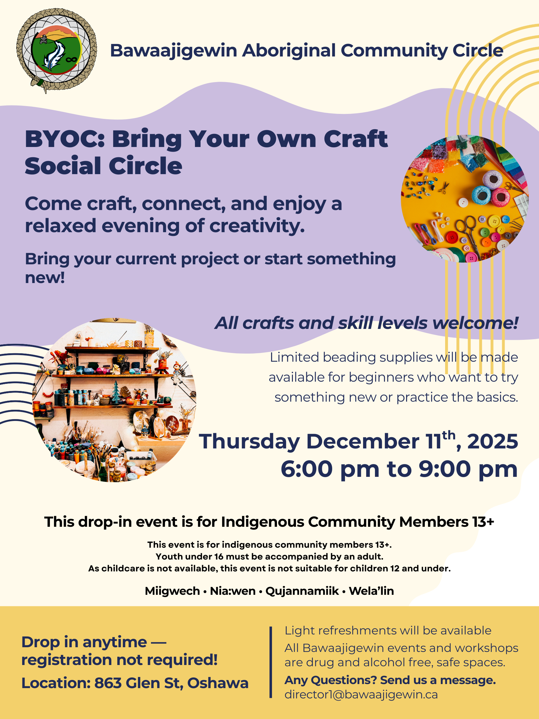 Bring Your Own Craft Night Thursday, December 11, 2025 6:00 p.m. 9:00 p.m. 18:00 21:00 Google Calendar ICS Come craft and connect and enjoy a relaxed night of creativity.