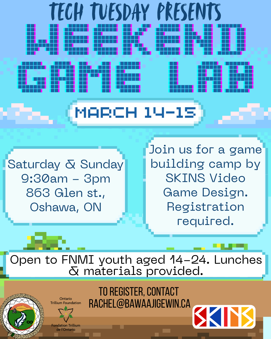 Tech Tuesday SKINS Workshop Saturday, March 14, 2026 10:00 a.m. 10:00 Sunday, March 15, 2026 12:00 p.m. 12:00 Google Calendar ICS